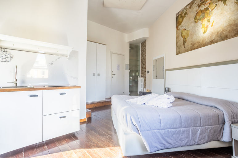UN’ELEGANTE CAMERA DISPOSTA SU DUE LIVELLI, DOVE IL SOPPALCO IN STILE RAFFINATO DONA PROFONDITÀ E CARATTERE ALL’AMBIENTE. AMPIE FINESTRE REGALANO UN SUGGESTIVO AFFACCIO SUI TETTI DELLA CITTÀ, IMMERGENDO GLI OSPITI IN UN’ATMOSFERA LUMINOSA, INTIMA E AUTENTICA. IDEALE PER COPPIE O VIAGGIATORI ALLA RICERCA DI COMFORT, DESIGN E PANORAMI URBANI INCANTEVOLI.